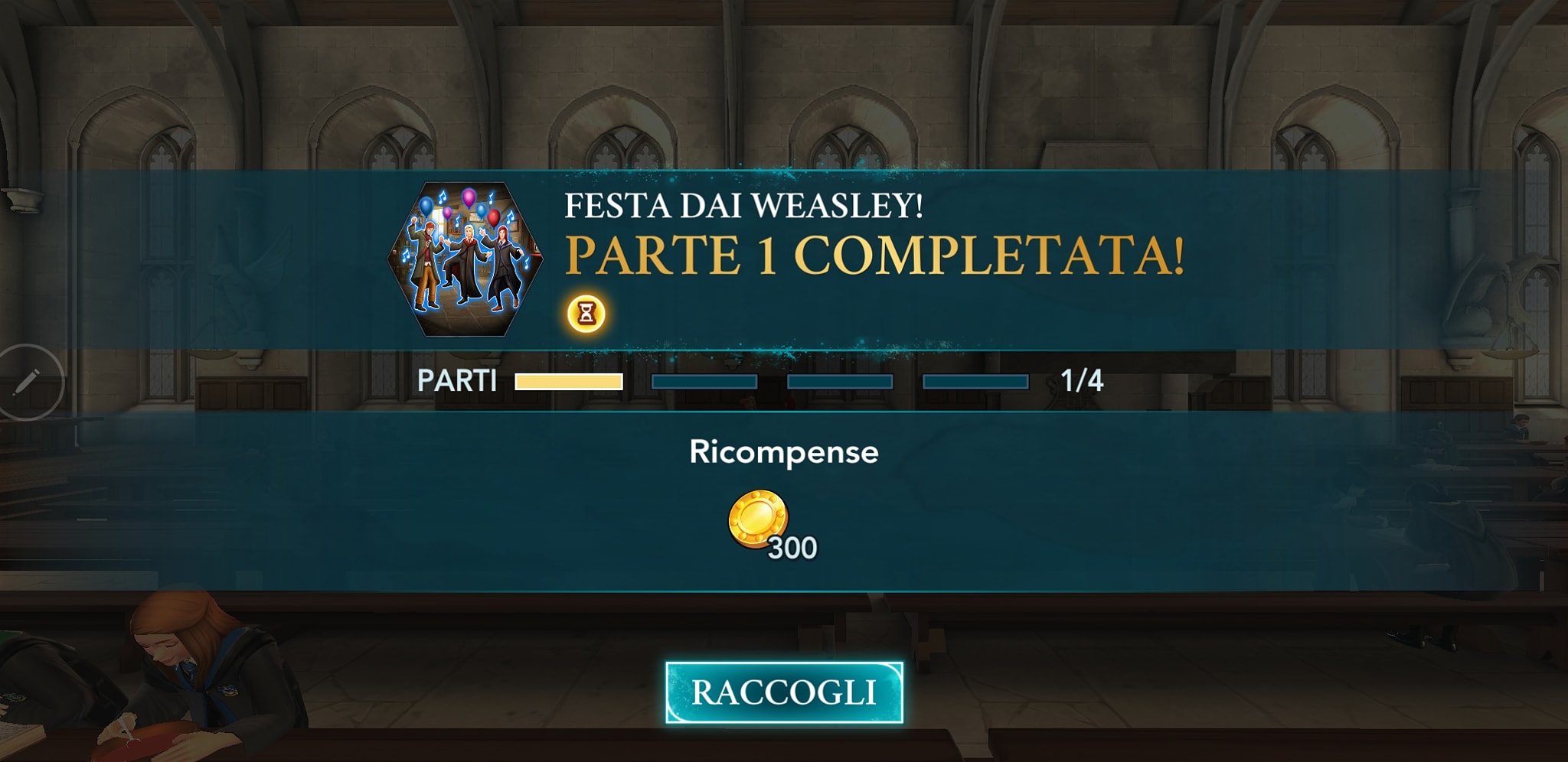 RICOMPENSA PARTE 4: 4 GEMME, 1000 XP, 3 FIGURINE CIOCCORANA, MINIATURA DELL' OROLOGIO DI CASA WEASLEY NEL DORMITORIO (UNA TIME TOFFEE ARGENTO OGNI 30 GIORNI )